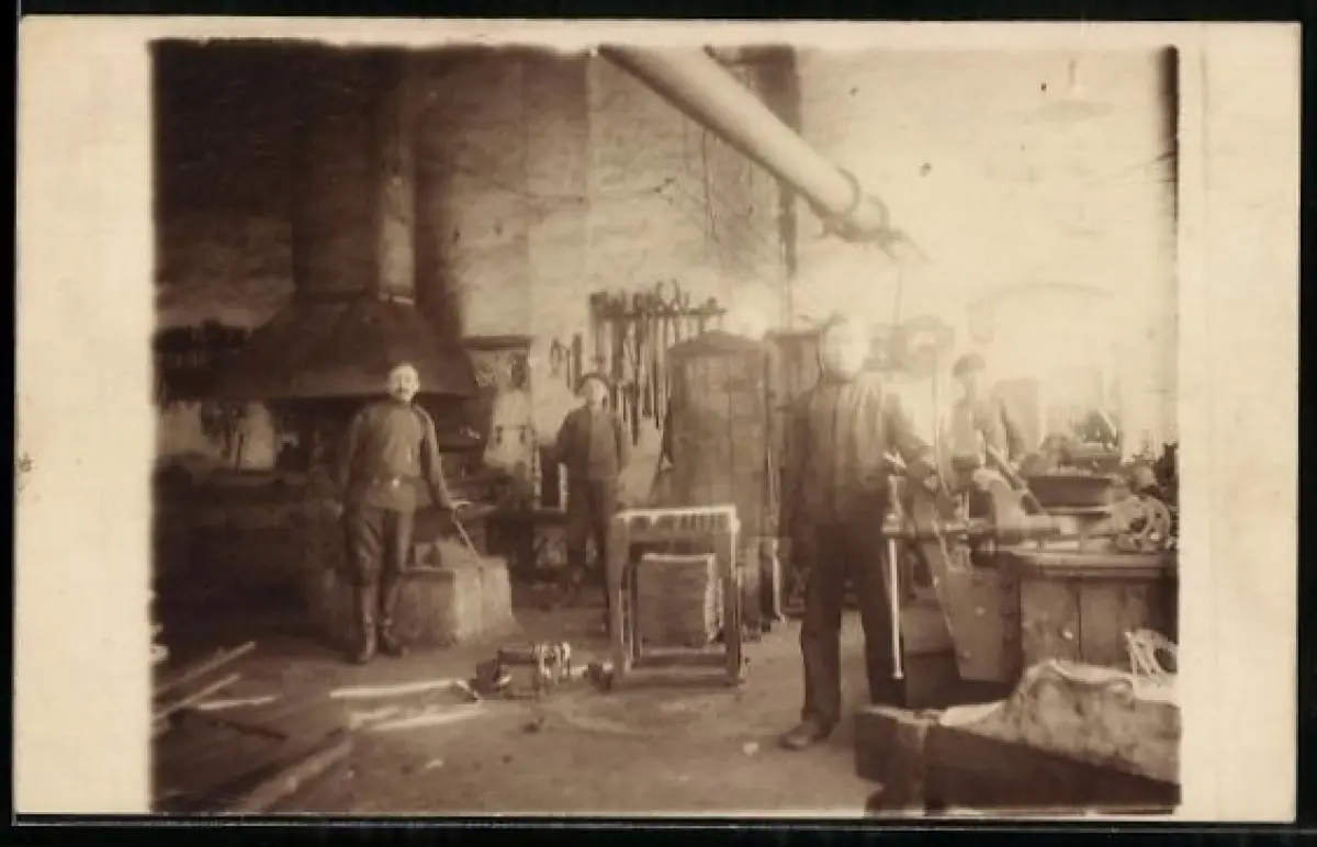 Foto-AK Fabrikarbeiter in einer Werkhalle