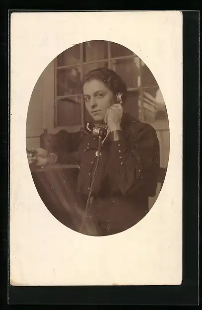 Foto-AK Frau in Arbeitskleidung am Telefon