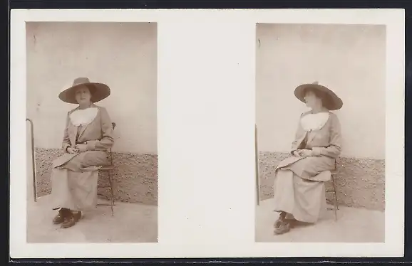 Foto-AK Frau mit Hut sitzt auf einem Stuhl