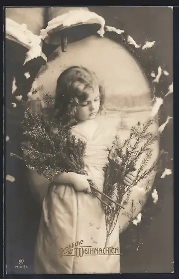 Foto-AK GG Co. Nr. 1700 /3: Junges Mädchen mit Tannenzweigen in Winterkulisse
