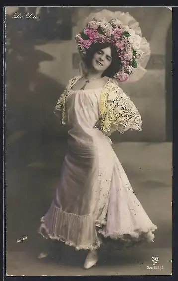 Foto-AK GG Co. Nr. 286 /5: Frau im Kleid mit grossem Blumenhut