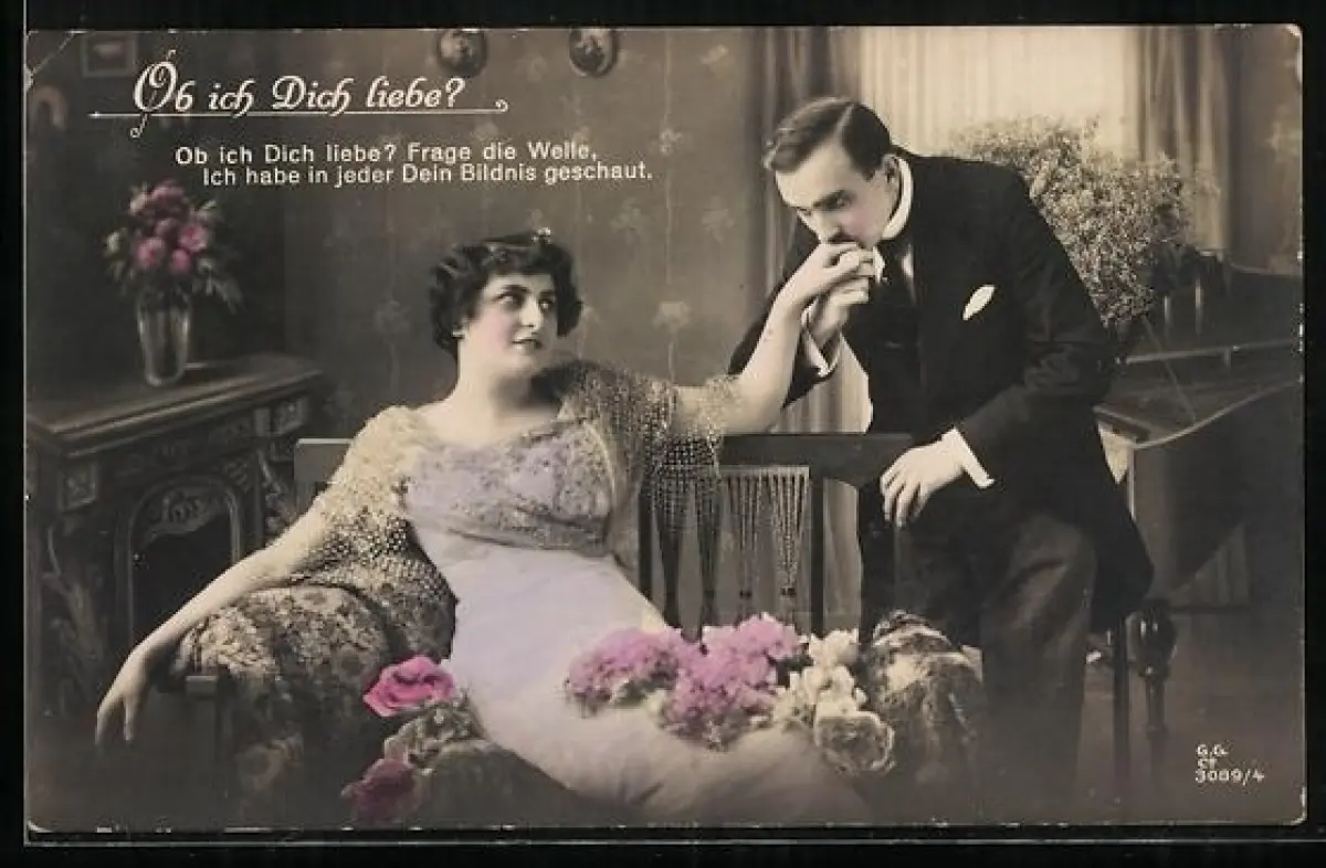 Foto-AK GG Co. Nr. 3089/4: Mann küsst die Hand einer Frau, Ob ich Dich liebe?