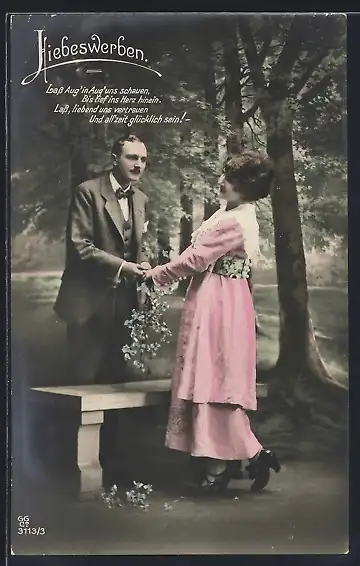 Foto-AK GG Co. Nr. 3113 /3: Mann wirbt um die Gunst einer Dame im Park