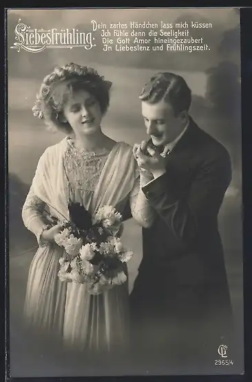Foto-AK GL Co Nr. 2965 /4: Junger Mann küsst die Hand seiner Liebsten