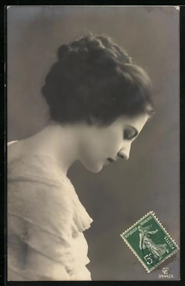 Foto-AK GL Co Nr. 3444/3: Junge Frau senkt nachdenklich den Kopf