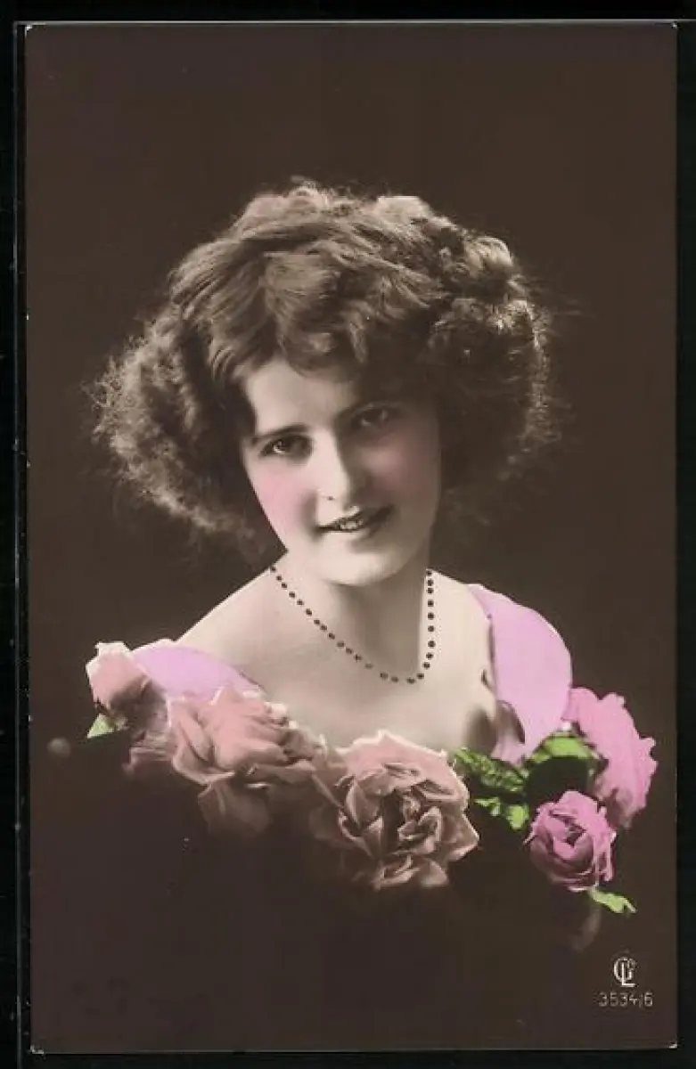 Foto-AK GL Co Nr. 3534/6: Junges Mädchen mit Blumen am Kleid