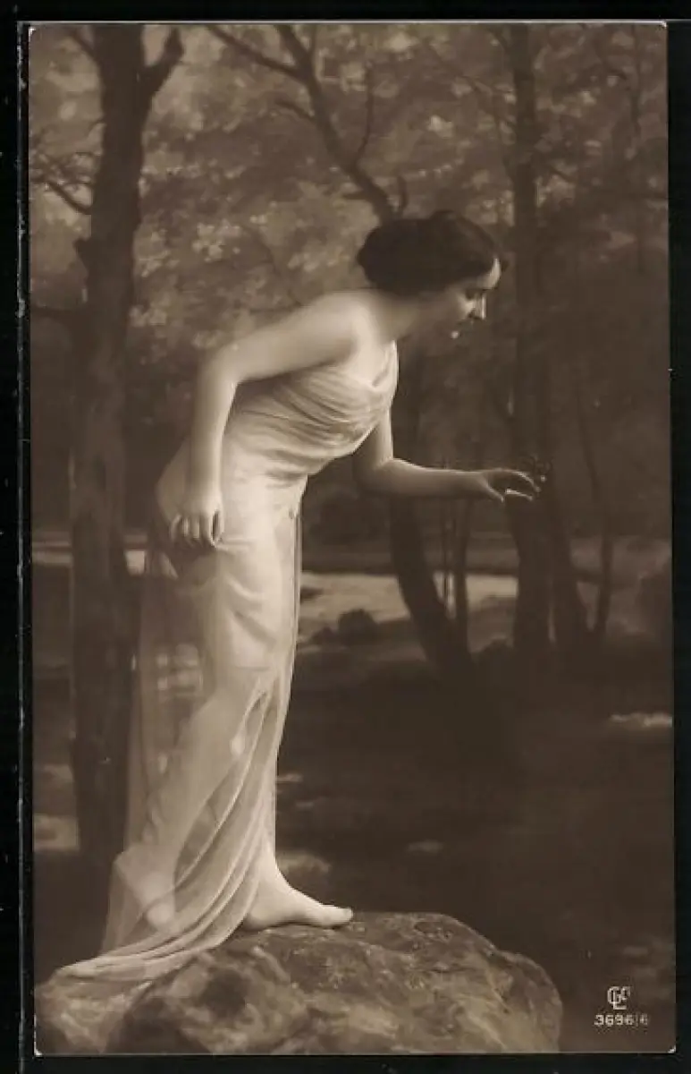 Foto-AK GL Co Nr. 3696/6: Dame in durchsichtigem Gewand im Wald