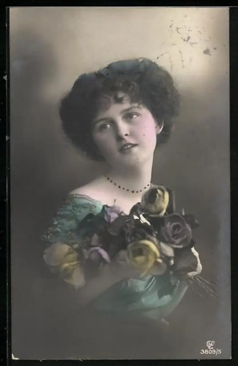 Foto-AK GL Co Nr. 3809/5: Fräulein mit Rosenstrauss