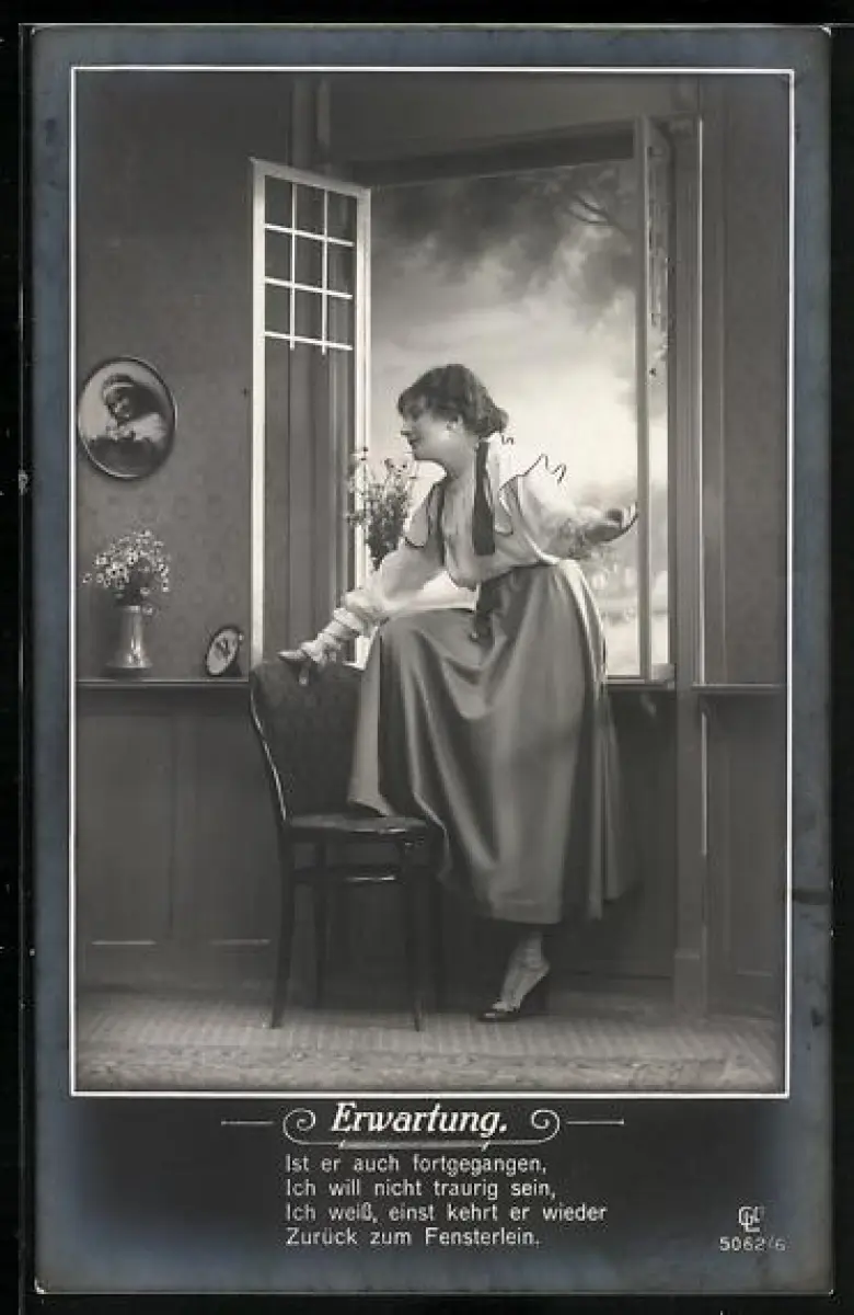 Foto-AK GL Co Nr. 5062/6: Dame wartet am Fenster auf ihren Geliebten