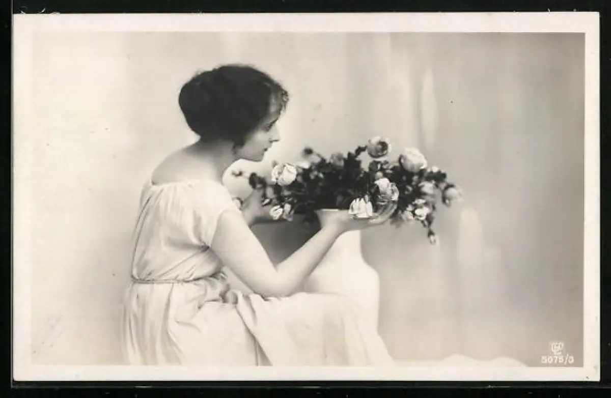 Foto-AK GL Co Nr. 5075/3: Junge Frau mit Rosenstrauss
