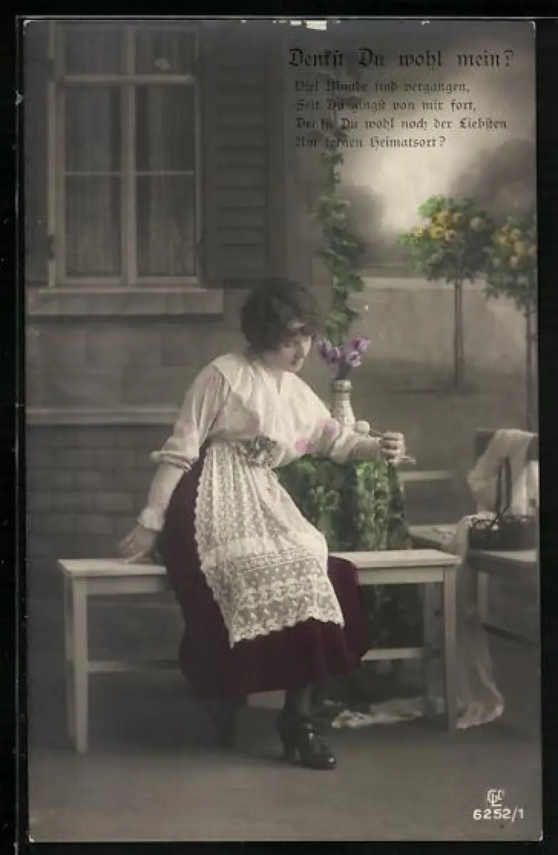 Foto-AK GL Co Nr. 6252/1: Frau sitzt im Garten