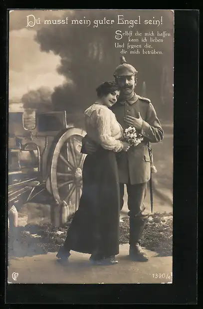 Foto-AK GL Co Nr. 7390 /4: Soldat in Uniform mit seiner Liebsten im Arm