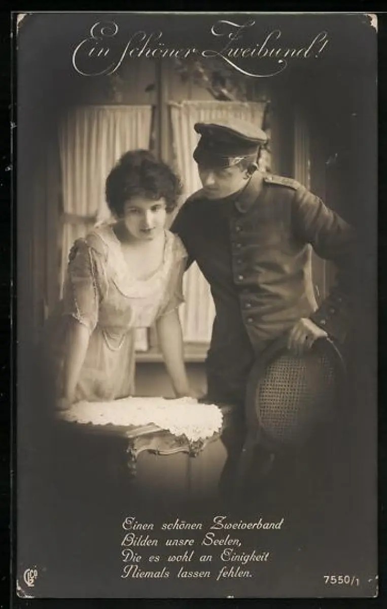 Foto-AK GL Co Nr. 7550/1: Soldat in Uniform mit Frau