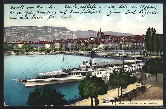 Foto-AK Genève / Genf, Raddampfer und Salève