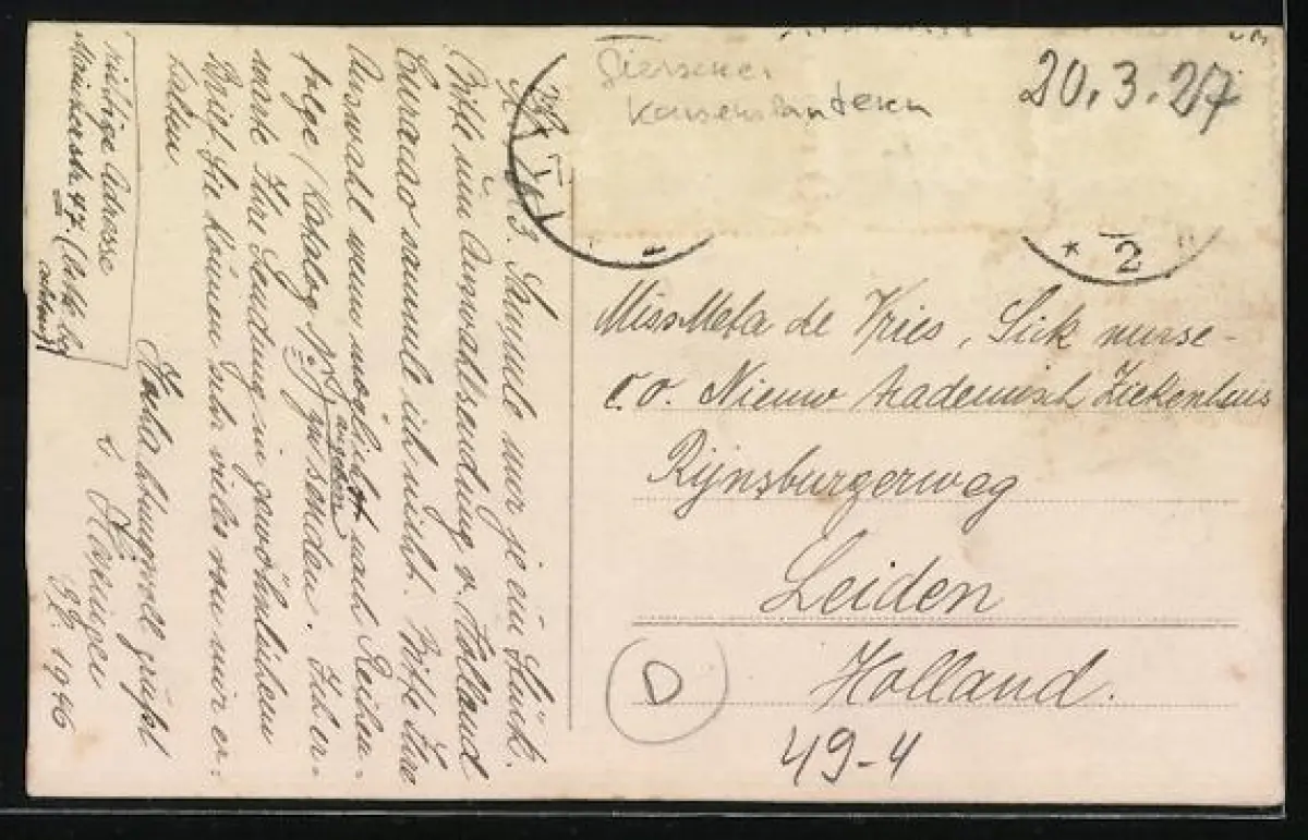 alte Ansichtskarte, gelaufen, Briefmarke entfernt, guter Zustand