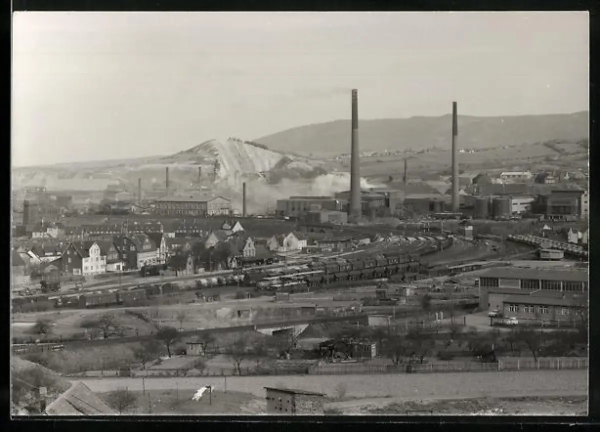 Foto-AK Goslar, Panorama mit Eisenbahnschienen und Fabriken