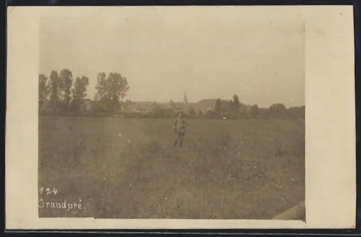 Foto-AK Grandpré, Vue d`un champ avec le village en arrière-plan