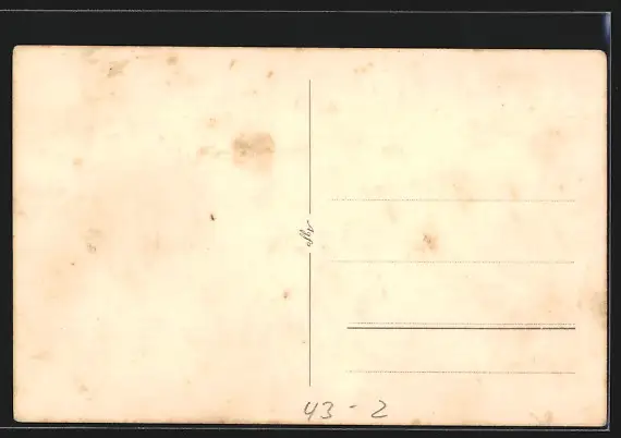 Personenbezogene Daten auf der Rückseite der Karte wurden durch blauen Textmarker unkenntlich gemacht. Die blauen Stellen sind auf die Vorderseite durchgeweicht und wirken sich negativ auf das Postkartenfoto aus
