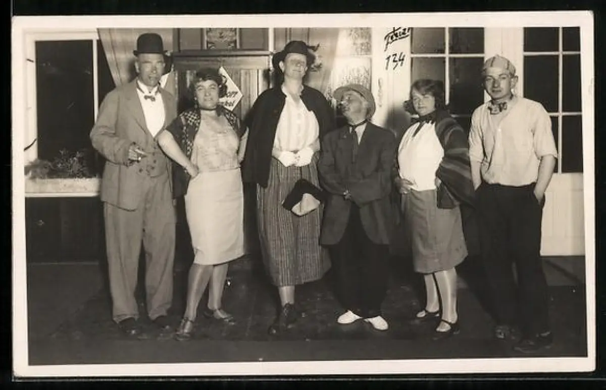 Foto-AK Gruppe in Kostümen zum Fasching