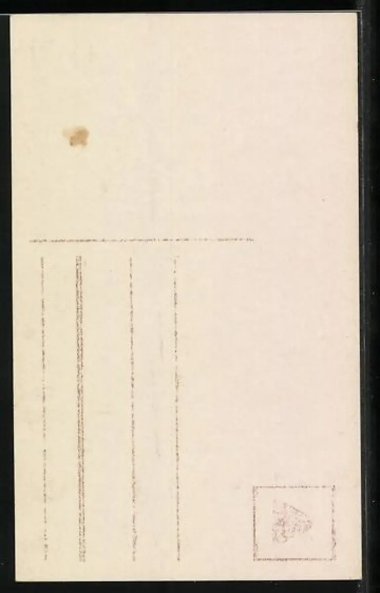Personenbezogene Daten auf der Rückseite der Karte wurden durch blauen Textmarker unkenntlich gemacht. Die blauen Stellen sind auf die Vorderseite durchgeweicht und wirken sich negativ auf das Postkartenfoto aus