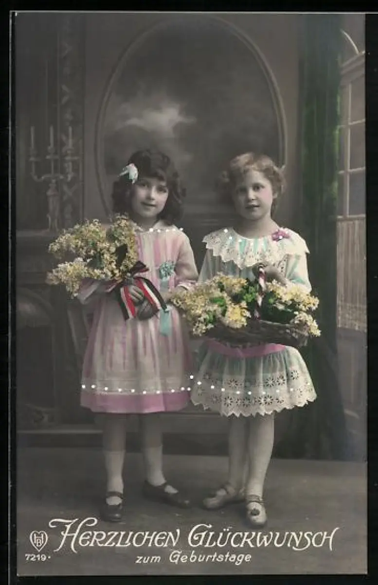 Foto-AK HB Nr. 7219: Zwei junge Mädchen mit Blumensträussen