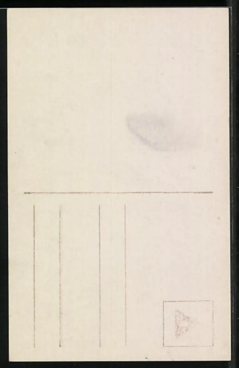 Personenbezogene Daten auf der Rückseite der Karte wurden durch blauen Textmarker unkenntlich gemacht. Die blauen Stellen sind auf die Vorderseite durchgeweicht und wirken sich negativ auf das Postkartenfoto aus