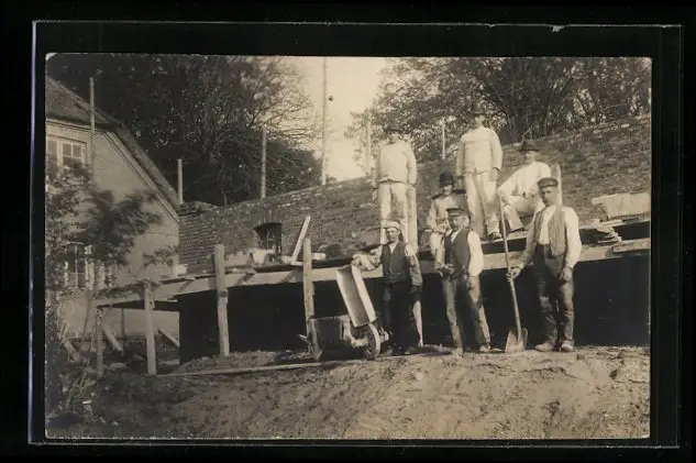 Foto-AK Handwerker mit Spaten an einer Baustelle