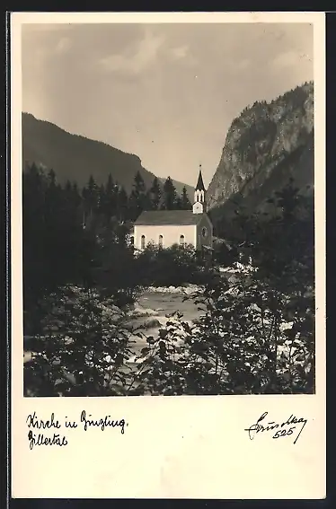 Foto-AK Hans Hruschka Nr.525: Ginzling im Zillertal, Die Kirche in Ginzling