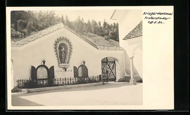 Foto-AK Hinterstoder, Kriegerdenkmal, mit Säule
