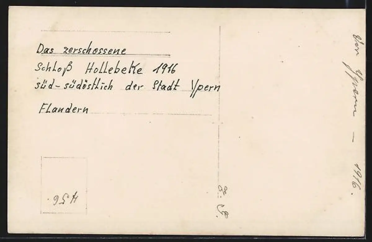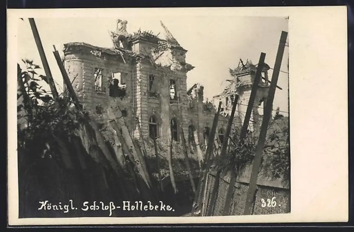 Foto-AK Hollebeke, Königliches Schloss in Trümmern