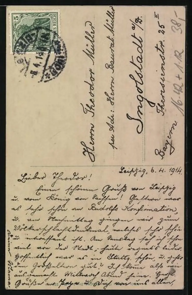 alte Ansichtskarte, gelaufen 1914, guter Zustand