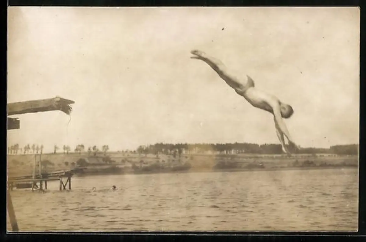Foto-AK Ilmenau, Freibad mit Sprungturm
