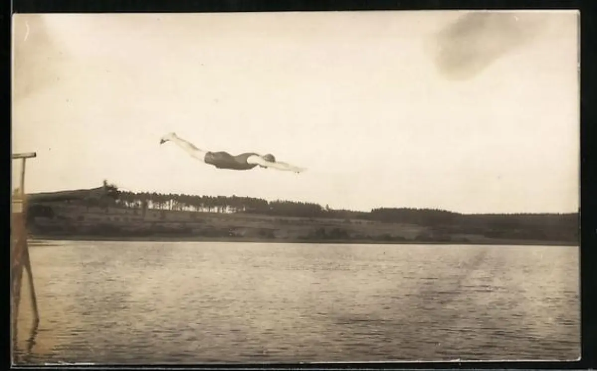 Foto-AK Ilmenau, Sprungbrett am Freibad