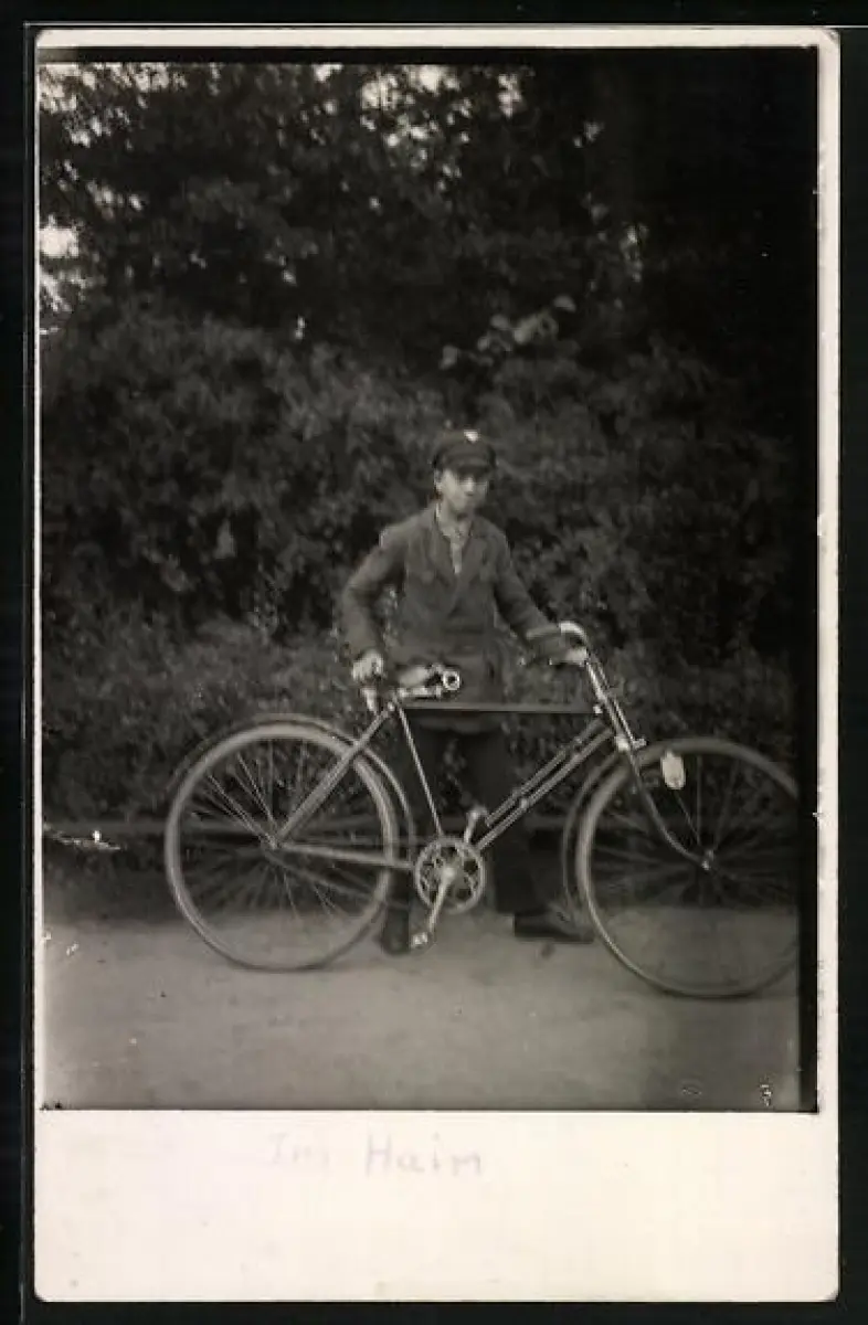 Foto-AK Junger Mann mit Fahrrad