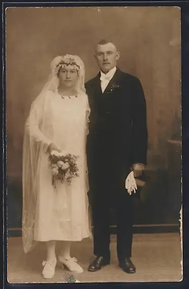 Foto-AK Junges Ehepaar zu seiner Hochzeit