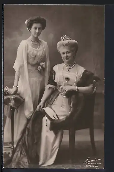 Foto-AK Kaiserin Auguste Victoria von Preussen auf Sessel und Prinzessin Viktoria Luise von Preussen