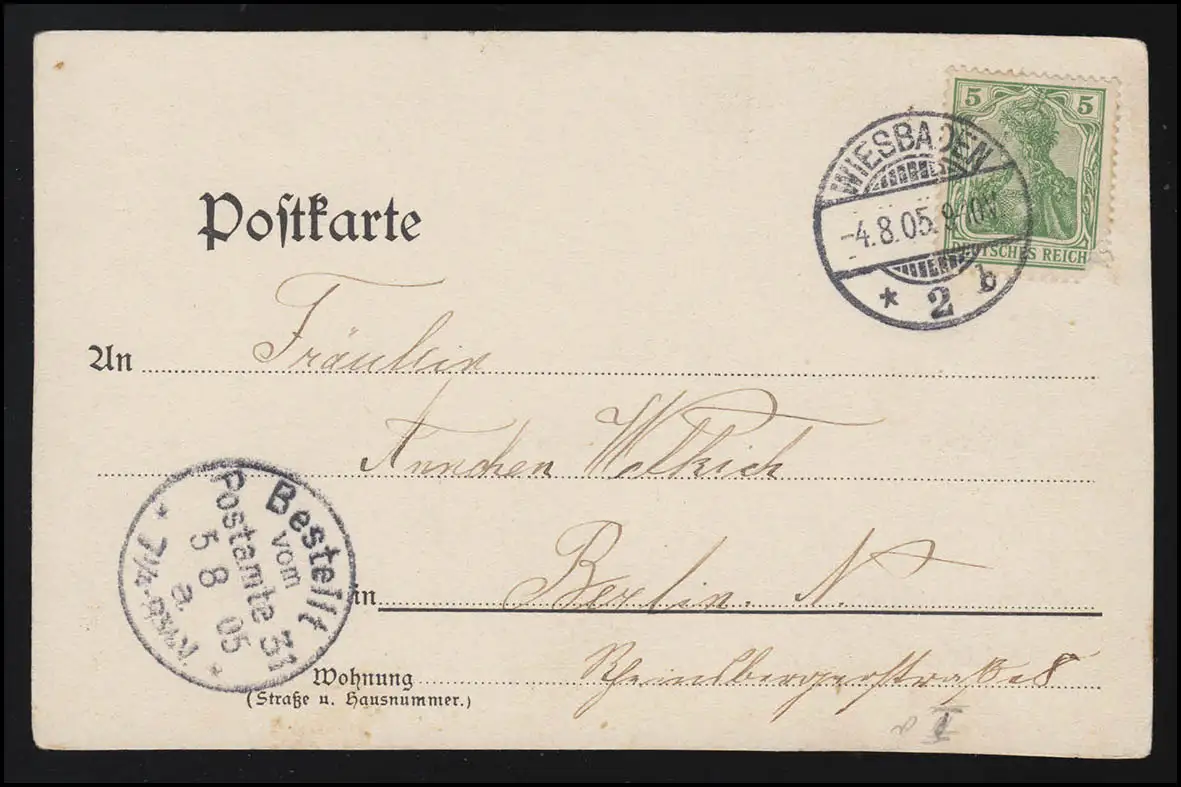 Foto AK Kinder Teenager junges Mädchen lange Haare WIESBADEN/ BERLIN 4./5.8.1905