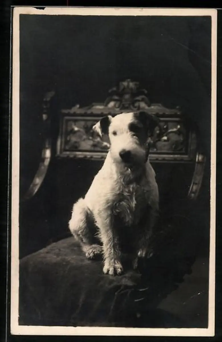 Foto-AK Kleiner Terrier auf einem Sitzmöbel