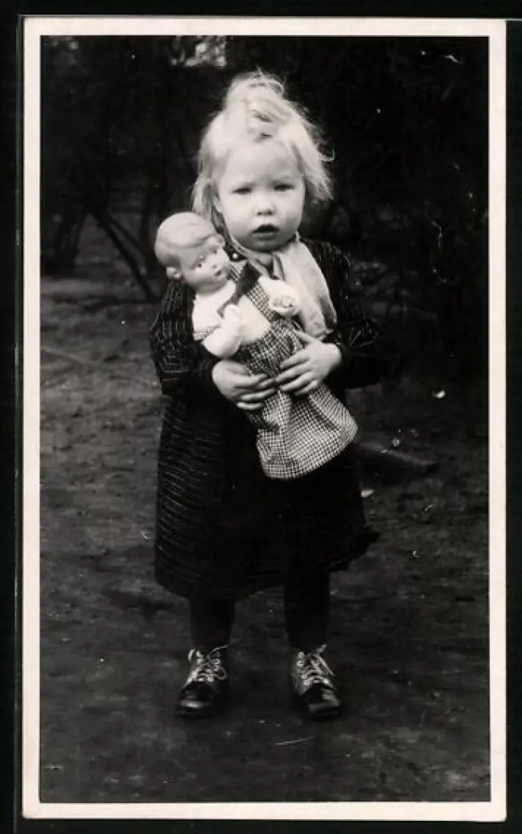 Foto-AK Kleines Kind mit einer Puppe in dem Armen