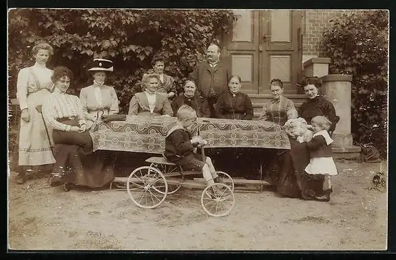 Foto-AK Knabe auf einem Dreirad, Spielzeug