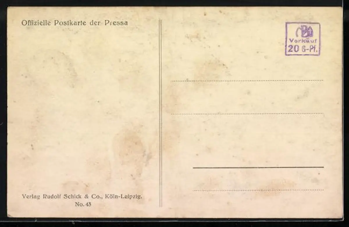 Foto-AK Köln, Hautgebäude der Pressa mit Ausstellungsbahn