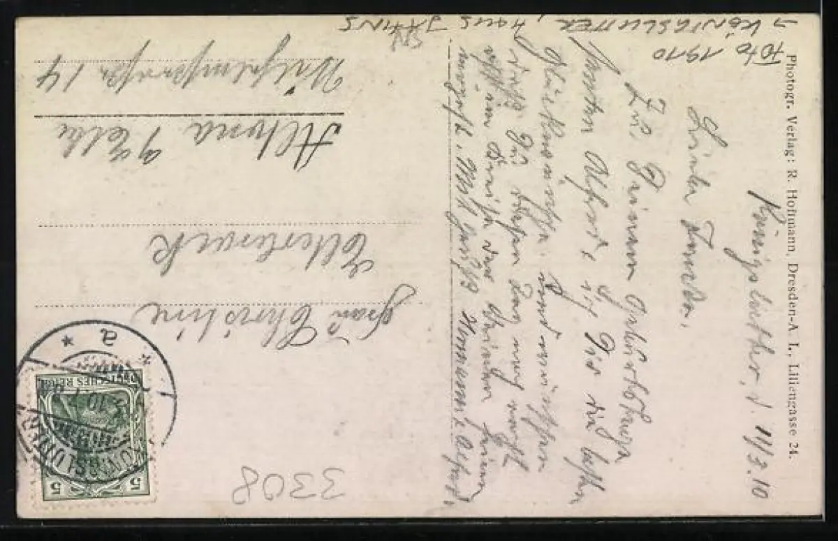 alte Ansichtskarte, gelaufen 1910, guter Zustand