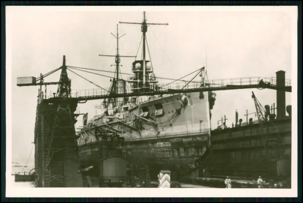 Foto AK - Kriegsschiff SMS König Albert - Großlinienschiff im Dock Werft Hafen