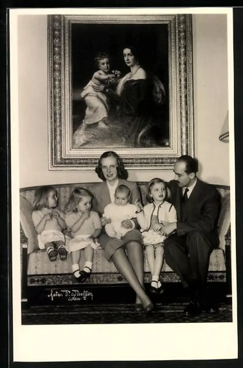 Foto-AK Kronprinz Otto von Österreich mit seiner Frau und Kindern
