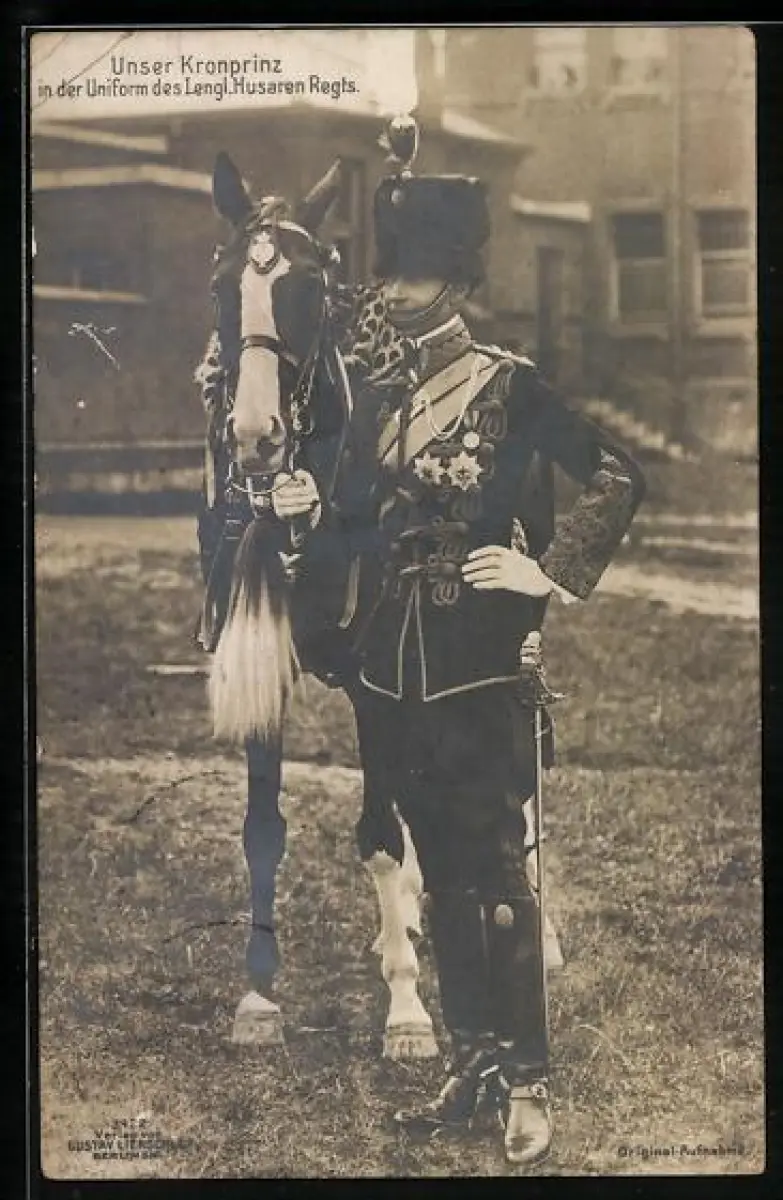 Foto-AK Kronprinz Wilhelm von Preussen in der Unifrom des Lengl. Husaren Regts., Uniformfoto