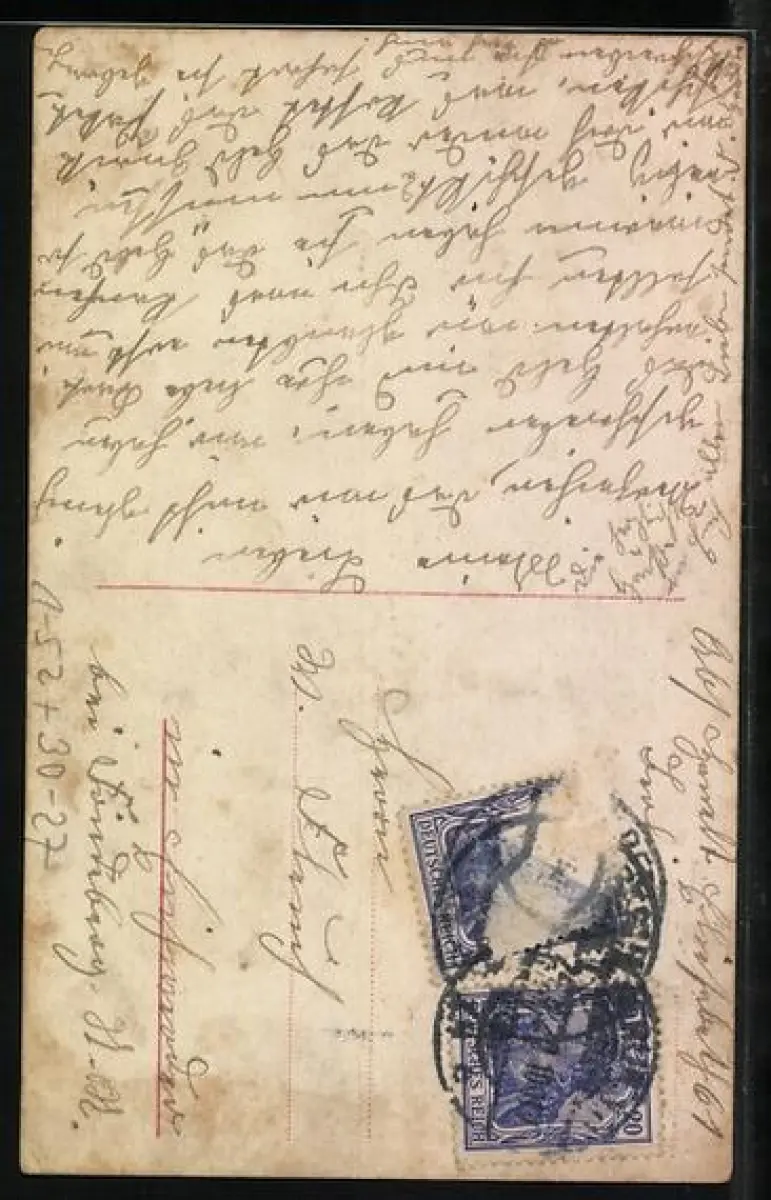 alte Ansichtskarte, gelaufen, Briefmarke entfernt, rückseitig Oberflächenschaden, Eckknicke li. oben, guter Zustand