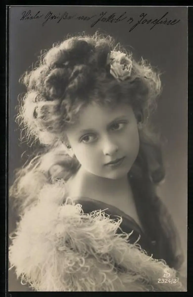Foto-AK L.J. & F.F. Nr. 2324/2: Fräulein mit Rose im Haar