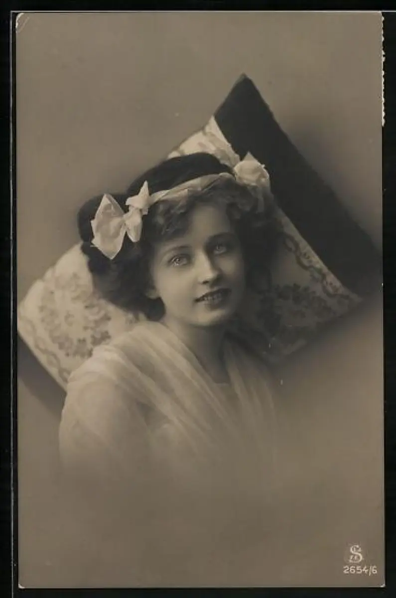 Foto-AK L.J. & F.F. Nr. 2654/6: Fräulein mit Haarschleife