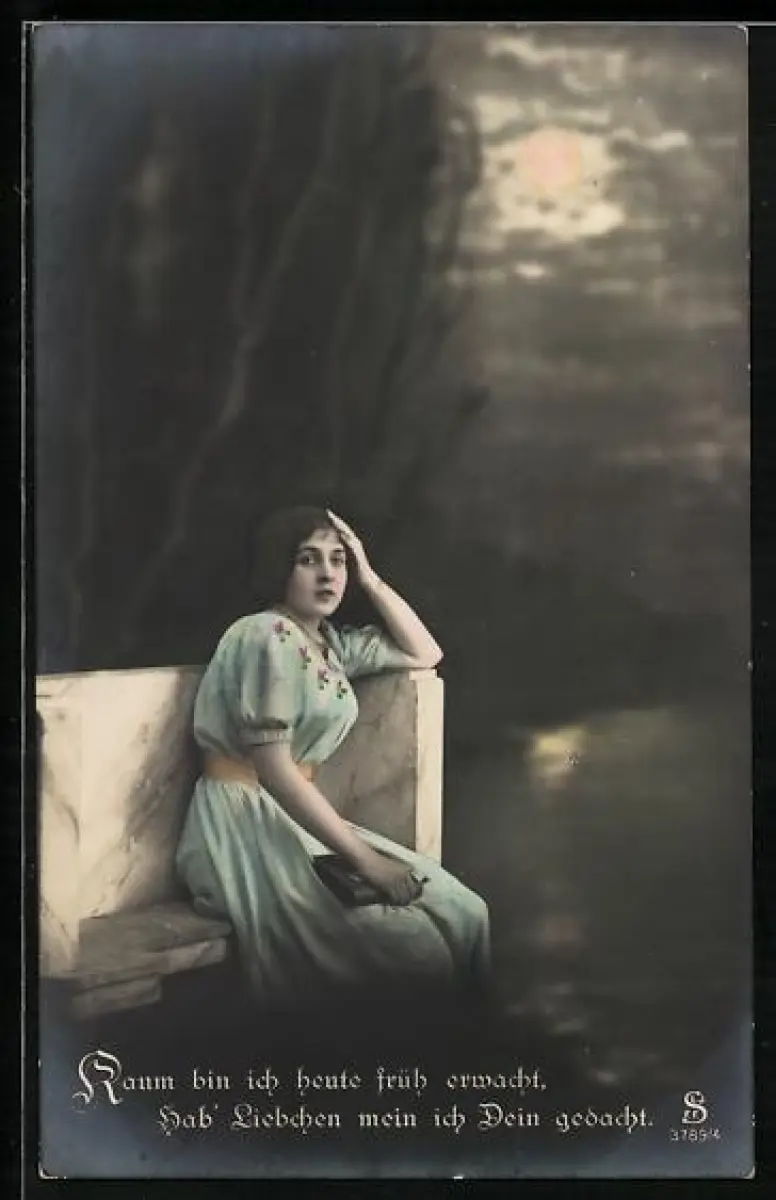Foto-AK L.J. & F.F. Nr. 3789/4: Fräulein im hellblauen Kleid