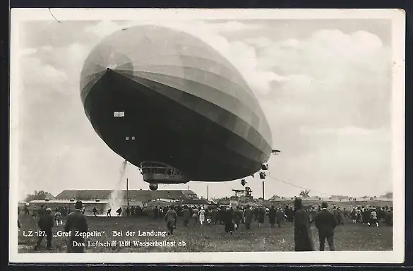 Foto-AK LZ 127 Graf Zeppelin lässt bei der Landung Wasserballast ab